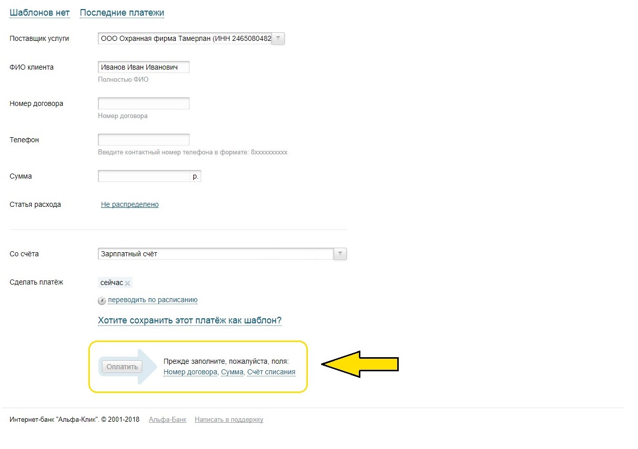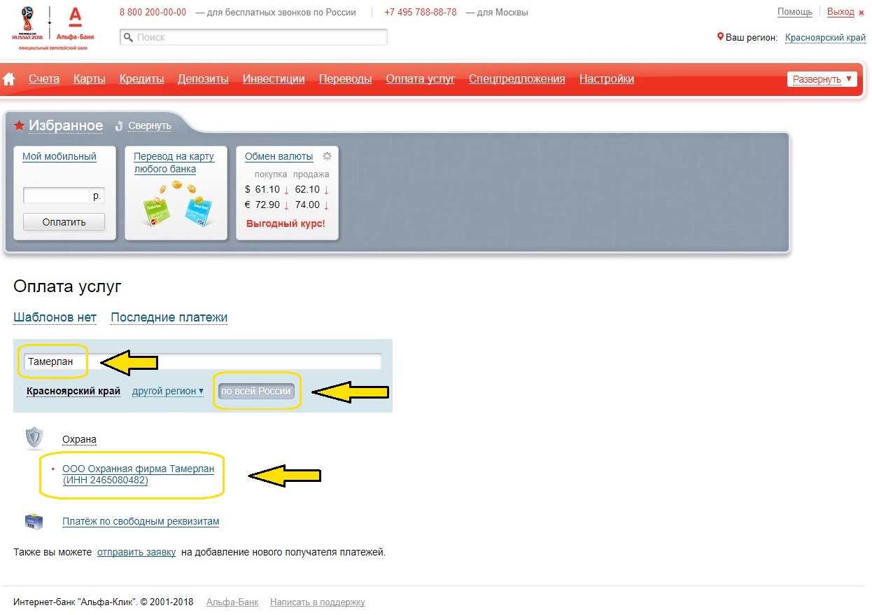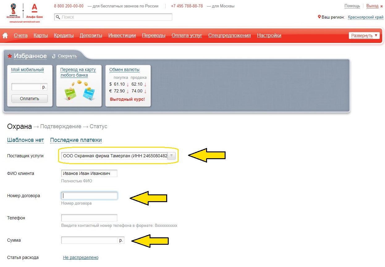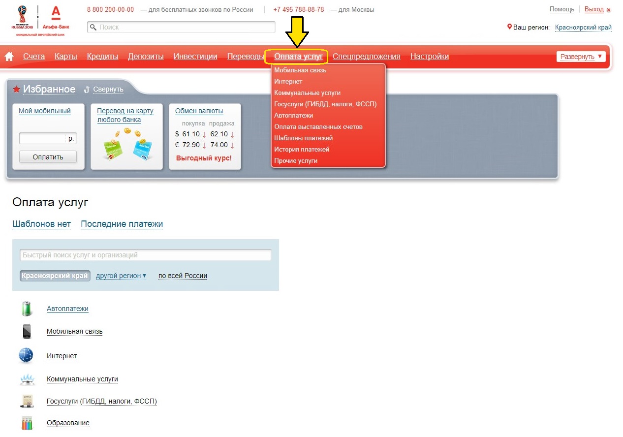 Оплата услуг с помощью Интернет-банка «Альфа-клик»
