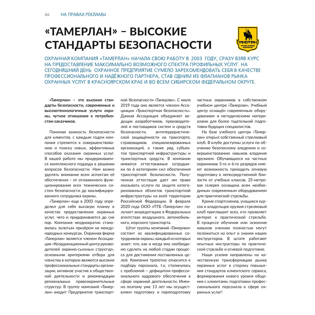 Охранное предприятие «Тамерлан» рассказала о своей истории, достижениях, о новых возможностях для клиентов и жителей города Красноярска. Читайте про нас в новом выпуске Январь-Февраль журнала «Мир безопасности»!