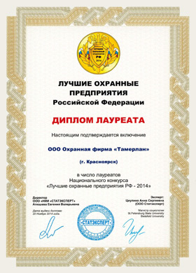 ООО Охранная фирма «Тамерлан» является единственным лауреатом на территории Красноярского края и данный факт позволяет с уверенностью сказать о том, что нам доверяют многие.