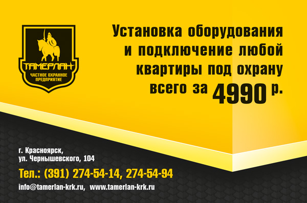 Сегодня с охранной фирмой «Тамерлан» сигнализация для любой квартиры становится еще доступнее.