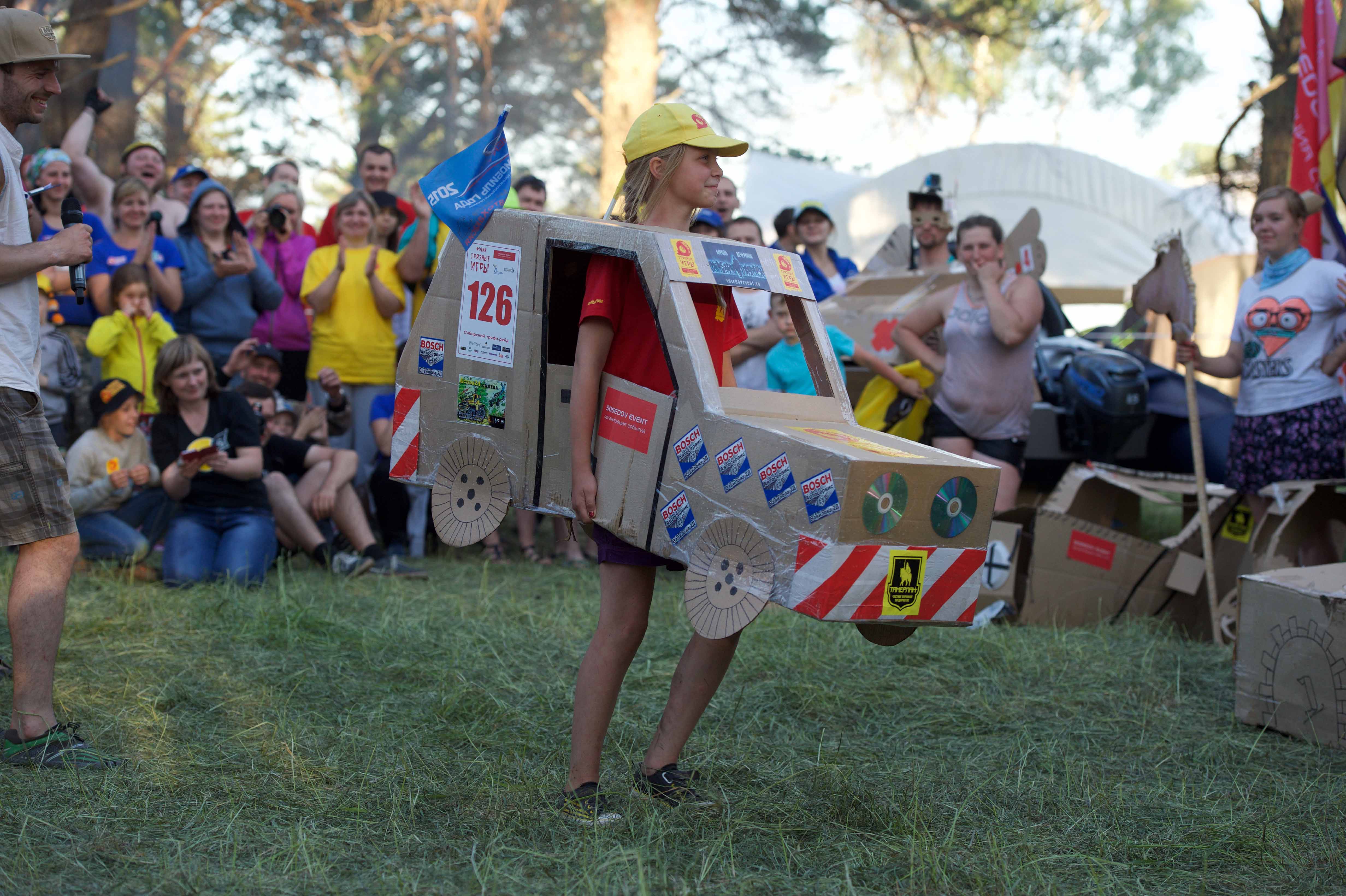 Огромный успехом увенчался конкурс «Картонный внедорожник». На протяжении целого дня участники строили машины из картона и был дан старт на картонных машинах по спортивным трассам фестиваля.